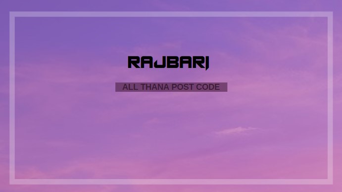 Get postal code or postcode or zip code for Rajbari district, all thanas or Upazilas. The following areas are Baliakandi, Nalia, Pangsha, Ramkol, Goalanda, Rajbari Sadar, etc noticeable.